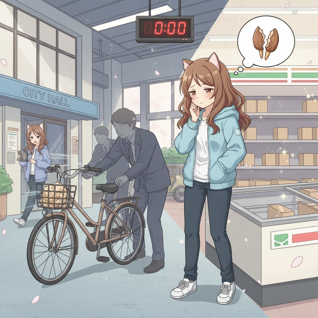 その女性の手が私の自転車にかかり、鍵穴に「え?あれ?なんで?」と言いながら